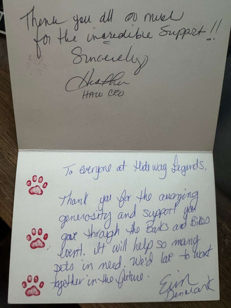 Huge shoutout to Halo Animal Rescue for the heartfelt thank you letter they sent over after the Barks & Bikes event. That’s what it’s all about right there — engines loud, hearts louder. 💪🐶