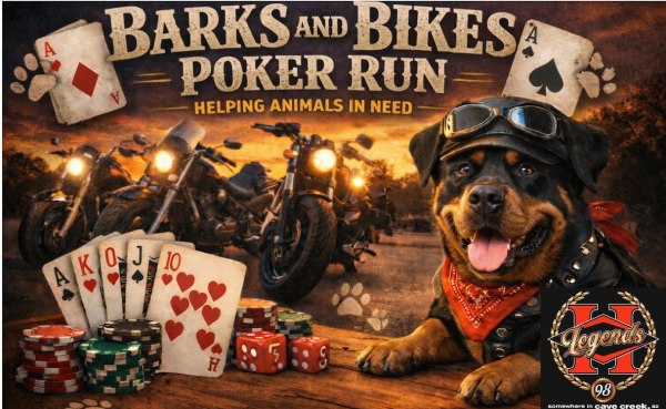 🎟️ FREE entry into the Barks and Bikes Poker Run